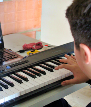 En SantoHogar Homeschool la música es eje central de nuestro modelo. Nuestros estudiantes aprenden a interpretar instrumentos de cuerda, percusión y piano. El ensamble es el producto final del taller. Contamos con equipos de estudio de grabación y sonido para presentaciones en vivo que los chicos aprender a operar